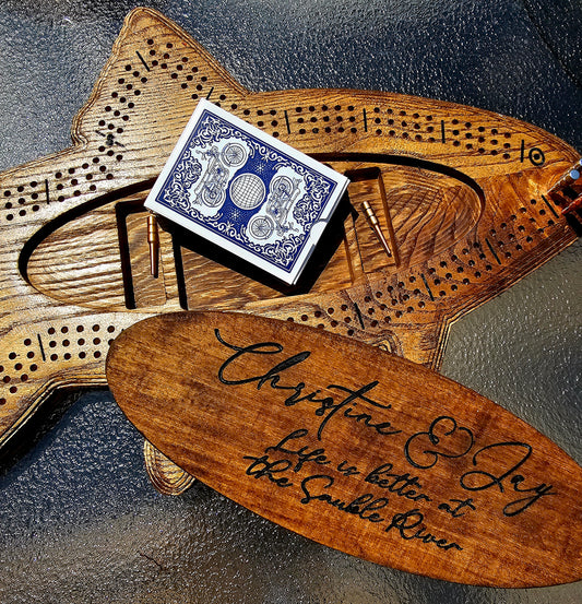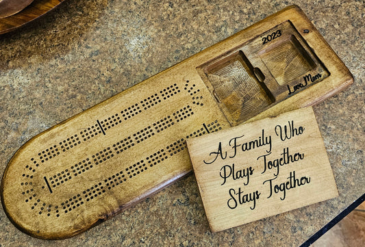 Solid Maple 2 Player Crib Board with Personalized Lid